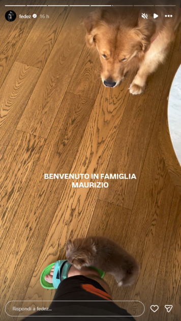 In particolare, Fedez ha deciso di far entrare nella propria vita un nuovo inquilino: si tratta di Maurizio, un nuovo cane che gli terrà compagnia insieme a Silvio, il Golden Retriever che il cantante ha adottato due anni fa. Dell’ultimo arrivato per ora sappiamo solo il nome e che è di taglia piccola, uno di quei cani che può essere trasportato dentro la borsa.