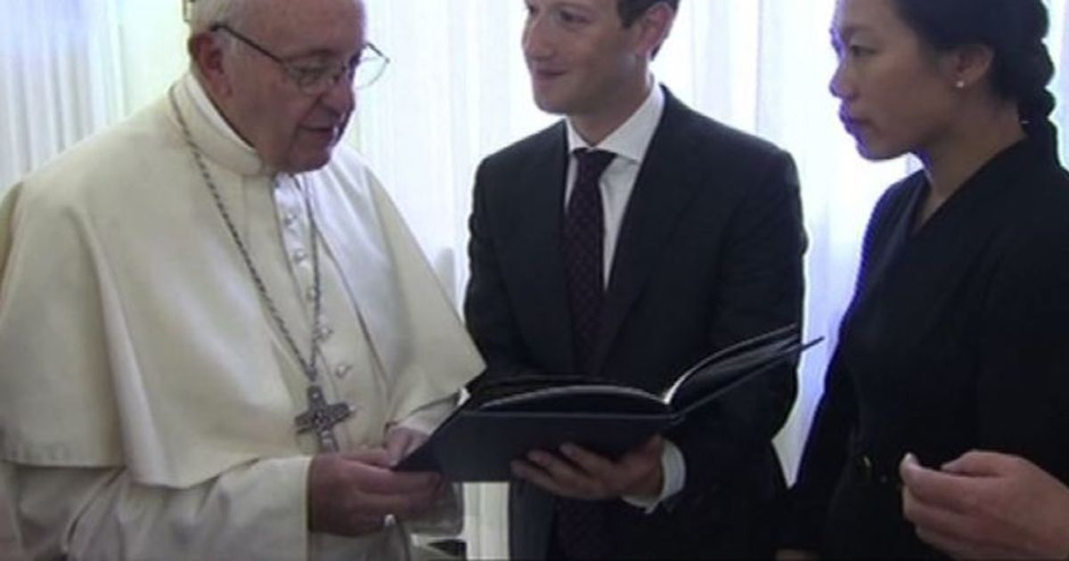 Roma – Mark Zuckerberg durante la sua visita a Roma è stato ricevuto in Vaticano da Papa Francesco insieme alla moglie Priscilla. I due hanno discusso dell’importanza di mettere in contatto le persone, soprattutto nelle parti del mondo senza accesso ad internet. Zuckerberg ha donato al Pontefice un modello di Aquila, l’aereo a energia solare di Facebook, mentre il Papa ha regalato alla coppia il suo libro.