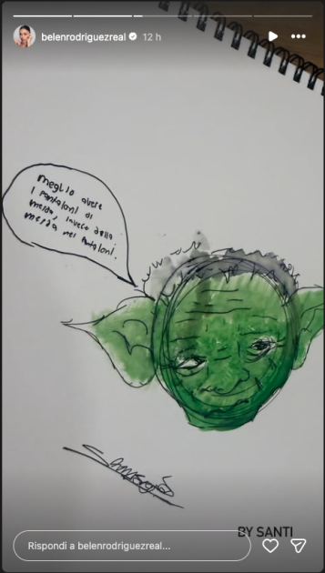 Nelle sue storie ha mostrato un disegno di Yoda, con un fumetto ironico che, proprio nello stile dell’iconico personaggio di Star Wars, fa una battuta davvero divertente.