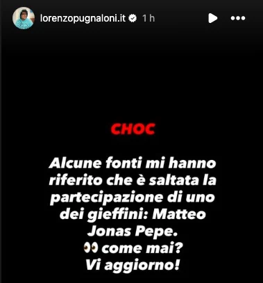 Il primo a far circolare la notizia è stato l’esperto di gossip Lorenzo Pugnaloni, con una storia sul suo profilo Instagram, ha comunicato di aver ricevuto da alcune fonti informazioni riguardo la possibile sparizione di uno dei concorrenti del Grande Fratello: come già detto, proprio Matteo Jonas Pepe. Nella storia si limitava a dare la notizia, accompagnandola con un “vi aggiorno” che avrebbe dovuto spiegare quali fossero le motivazioni dietro questa inaspettata svolta.