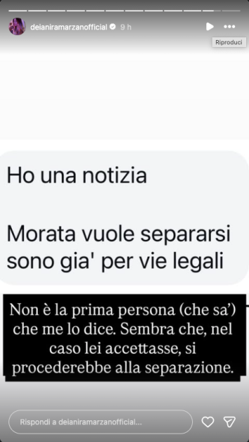 Ora invece gli ultimi rumor fanno sapere di nuovi indizi che smentirebbero quanto di buono c’è stato tra i due. In particolare, come riporta l’esperta di gossip Deianira Marzano, sul proprio profilo social è giunta alla sua attenzione più di una voce che parla di crisi. Nelle storie pubblicate su Instagram, infatti, si può leggere: