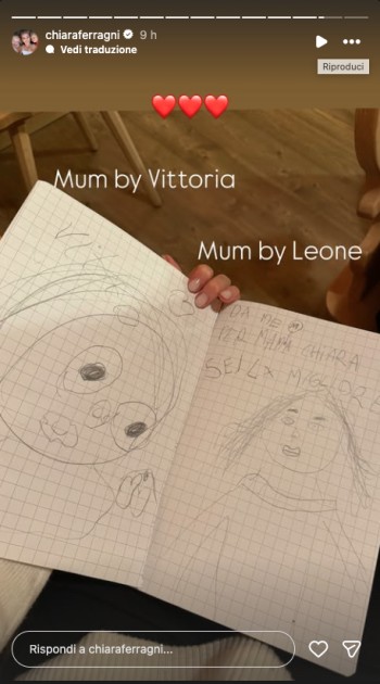 Al momento Chiara è in montagna con le sue sorelle e i bambini. Ha deciso di pubblicare un disegno fatto per lei. Quello di Leone è sicuramente più equilibrato, ma ugualmente dolce – ha scritto anche “sei la migliore” – mentre quello della piccola Vitta è decisamente più caotico, ma non meno divertente.