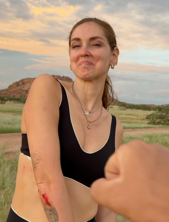 Durante un’escursione in mountain bike nella savana, Chiara Ferragni ha perso il controllo della bici ed è caduta sulla sabbia. Non è stato ripreso il momento esatto dell’incidente, ma l’influencer ha condiviso un video in cui mostra la ferita al braccio, ancora sanguinante. Accanto a una guida, ha commentato con ironia: «Sono caduta sulla sabbia, ma la vita va avanti».