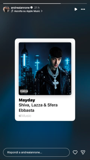 Questa, poi, ha tutte le “carte in regola” per essere interpretata come una frecciatina. La canzone in questione è Mayday, la canzone di Shiva con il featuring di Sfera Ebbasta & Lazza. Scorrendo il testo ci possono essere molti riferimenti che raccontano di una persona ferita e con il cuore spezzato da una relazione finita male. “Dirai: “Mayday”, ma non ti sentirò” e “Stanco di essere quello che aggiusta tutti i tuoi problemi” sono abbastanza esaustive.