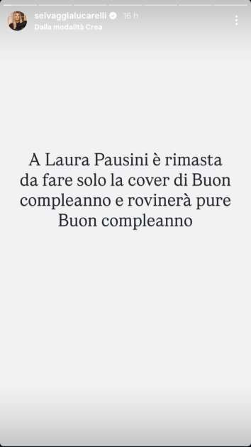 Così scrive Selvaggia Lucarelli: “A Laura Pausini è rimasta solo da fare la cover di Buon compleanno e rovinerà pure Buon compleanno”.