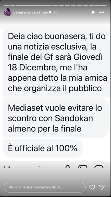 In queste ore si sta diffondendo l’ipotesi che la data della finale, prevista per il 15 dicembre, venga spostata al 18 per evitare l’ennesima batosta contro Sandokan, la nuova serie tv Rai che sta facendo ascolti da record.