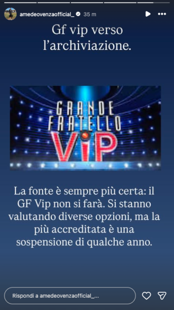 L’esperto di gossip è sicuro che il GF Vip sia vicino all’archiviazione. Verrebbe tenuto in standby per qualche anno e tornerebbe una volta passate tutte le polemiche.