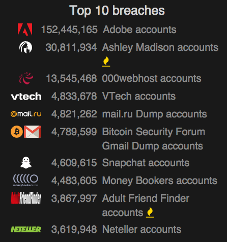 Diversi i casi: fra tutti Adobe, Ashley Madison e, più recentemente VTech.