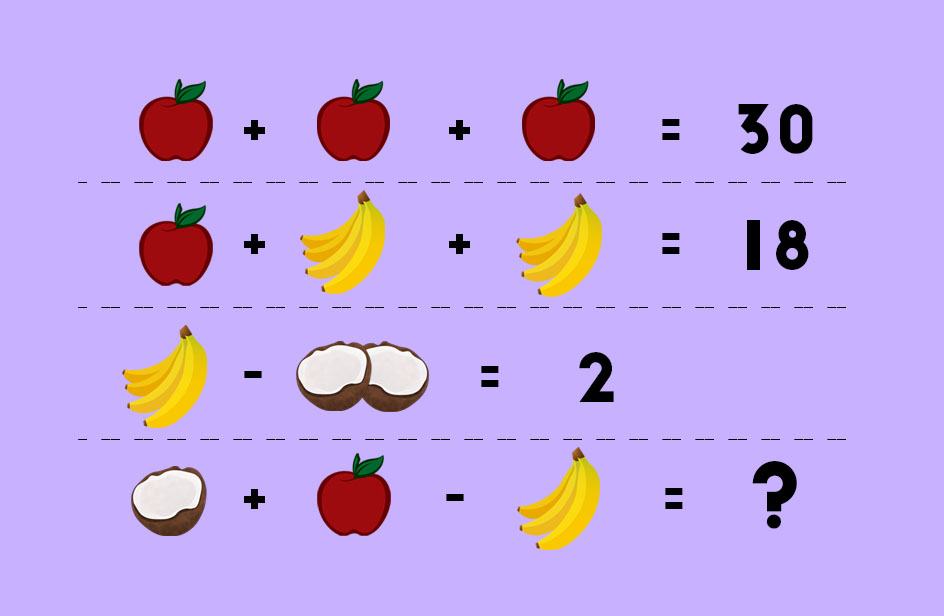 -Mela (10) più banane (ehi, sono 8 in tutto!) = 18